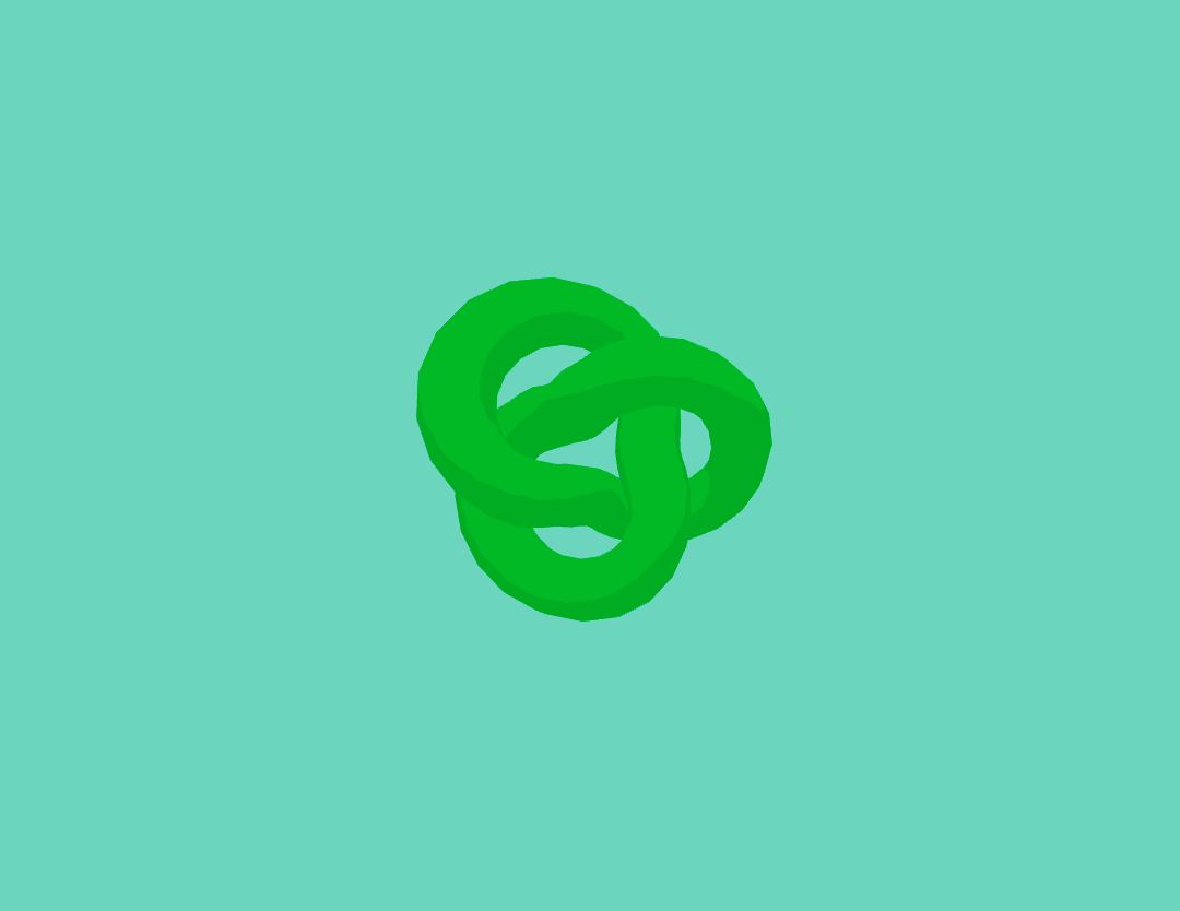 The cientos package provides a <TorusKnot /> component that serves as a short-cut for a TorusKnotGeometry and a MeshBasicMaterial with a Mesh object.